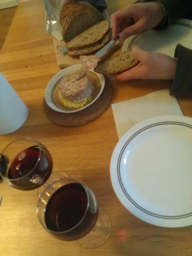 Dur dur parfois d’être obligée de finir une délicieuse boîte de pâté de porc au foie de canard du bon terroir d’Aynac… avec la fin de notre porto… Un régal! Merci papa, merci maman…
