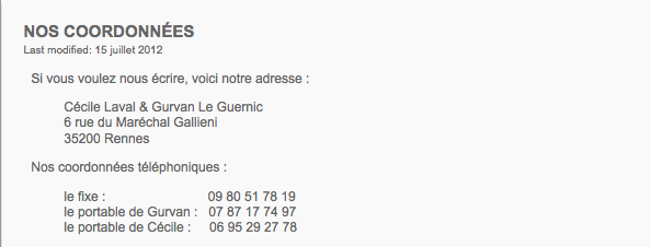 Sur le blog en haut se trouvent différents onglets, dont nos coordonnées…: