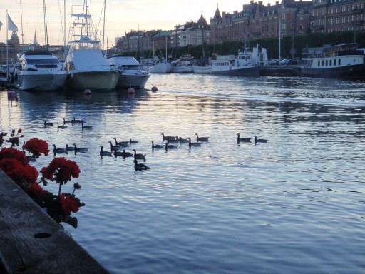Pour finalement, prendre un repas sur le bord de l’eau au coté des canards qui se rentrent, de la brise fraiche qui se lève et de notre premier coucher de soleil à Stockholm…