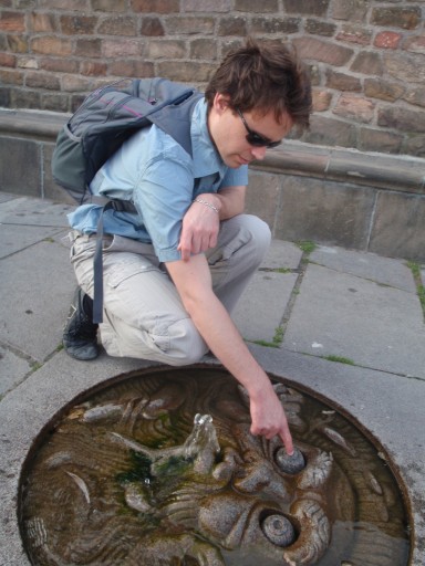 C’était le Tégnerlunden… mouais… La photo essaie de montrer la vue du guide, et … la vrai. Bon c’est pas si nul que ça, ok. Mais mes espoirs de me cocooner dans les bras de mon homme dans ce parc verdoyant, sont un peu tombés à l’eau… (surtout avec ce filet d’eau ridiculos ! ) ça a beaucoup fait rire Gurvan ! :p