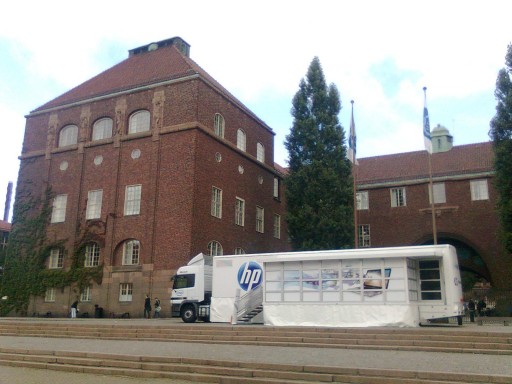 Jamais vu ca en France. Un bus privé publicitaire garé dans le campus juste devant le département informatique … ils y mettent les moyens HP (et Intel, Microsoft, … ils ont leur nom sur un côté du bus) pour vendre.