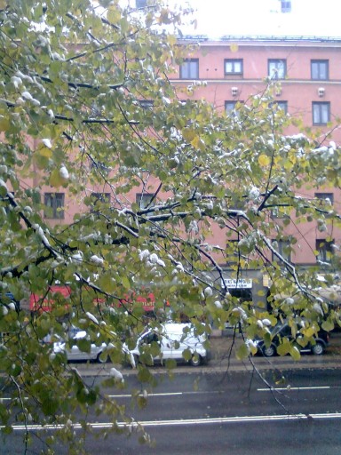 C’est un peu perturbant, mais en Suède (pour ceux qui suivent) le gros des feuilles tombent après les premières neiges.