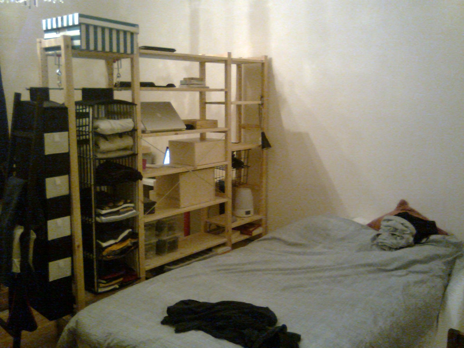 Aujourd’hui nous avons fait les magasins pour trouver des chaussures adaptées à l’hiver approchant. Du coup, pas de photo particulière, donc voici une autre photo de notre chez-nous pour compenser … notre chambre.