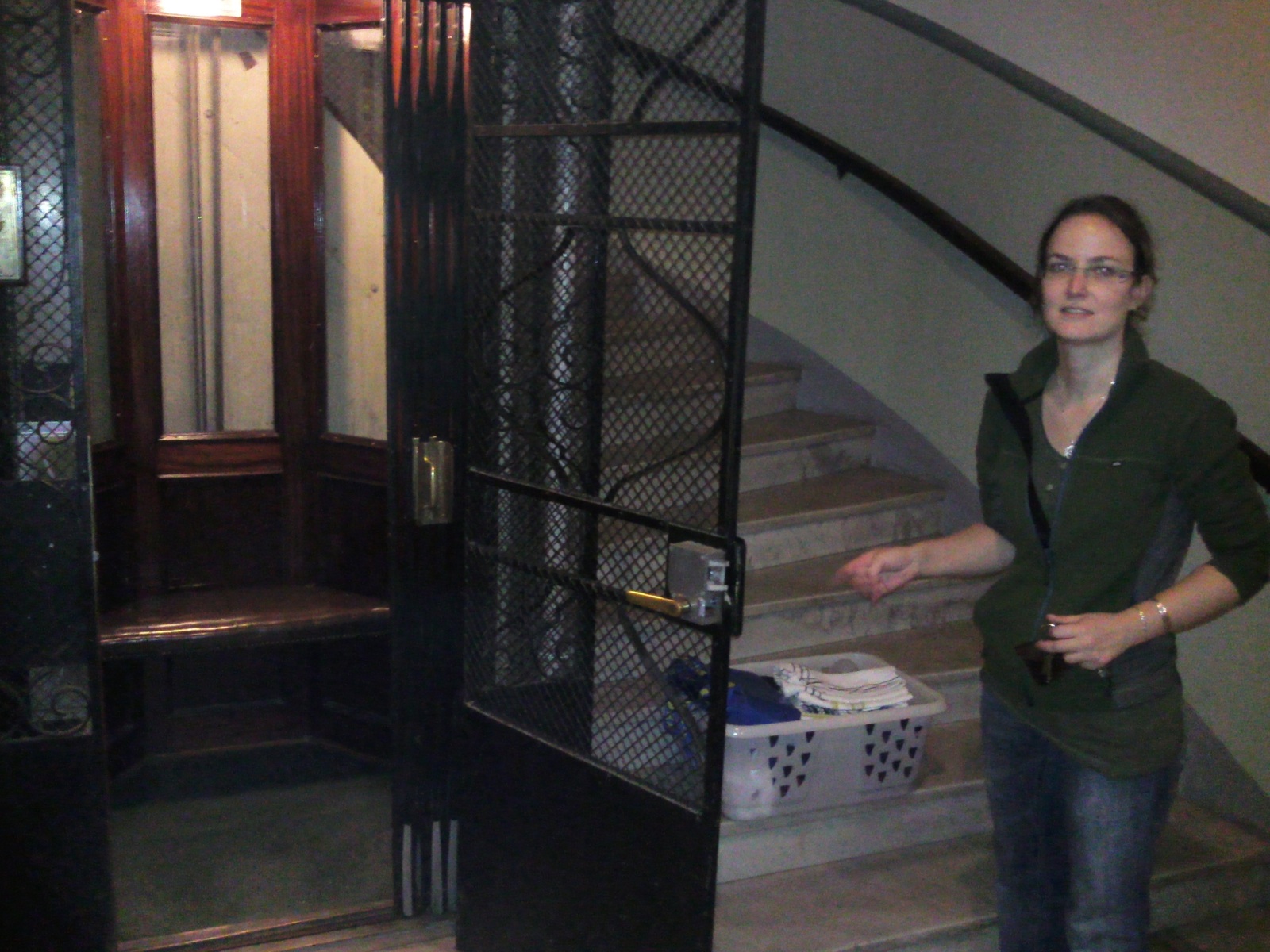 Et voici notre ascenseur de luxe ! Tout en bois avec banc intégré. Mais comme on habite au premier, on ne l’utilise pas trop (sauf pour le déménagement).