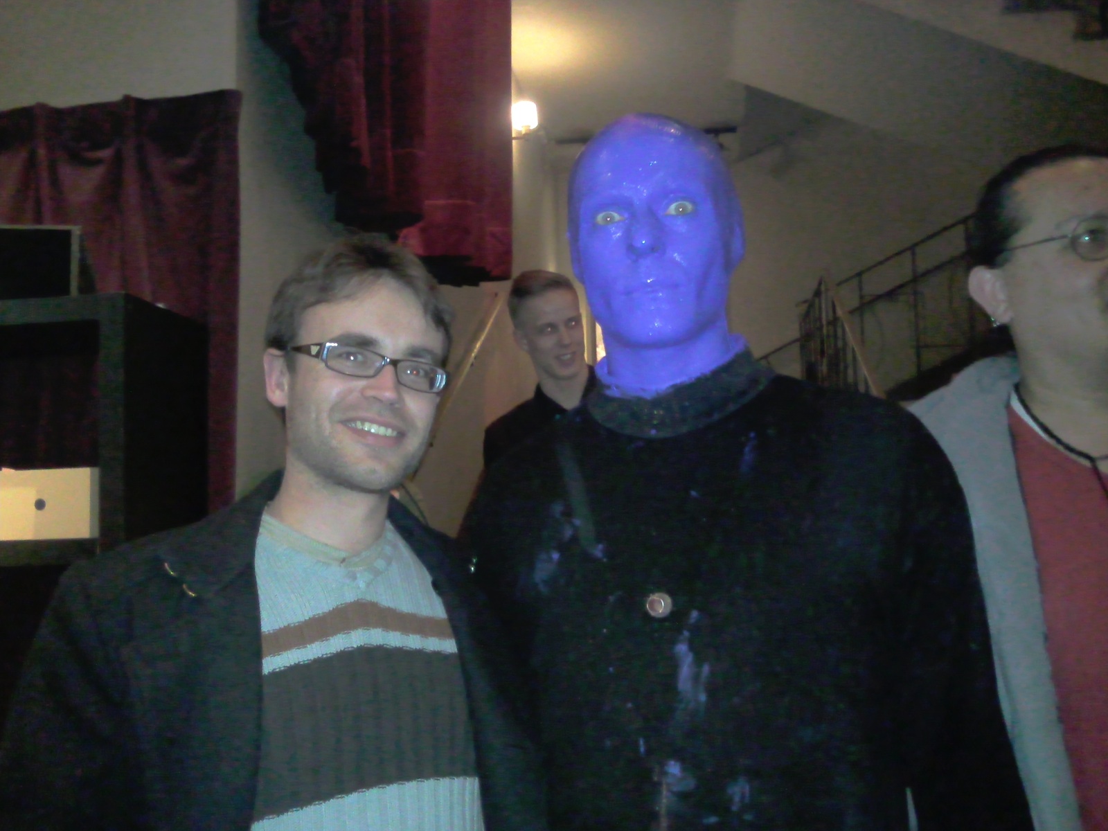 Ce vendredi soir nous sommes allés voir les « Blue Man » à Stockholm. Spectacle impressionnant, surprenant, rebondissant, comique, sonore, musical, tout en mimes, tout en rire, bref excellent moment passé avec eux, et petite photo de Gurvan avec l’un d’eux à la fin !