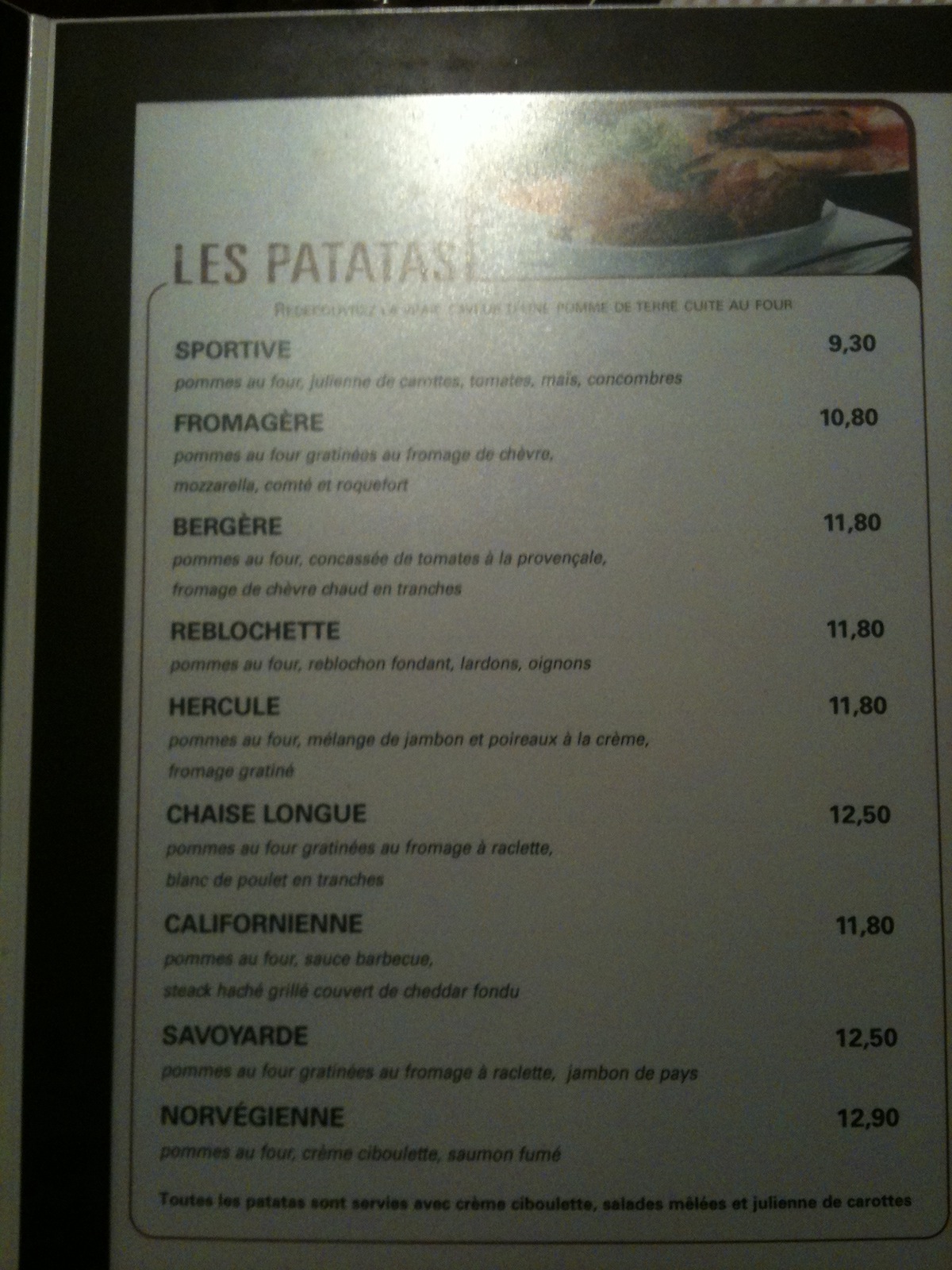 Passage à Paris ? Alors on fonce à la Patata et on mange deux énormes patates, tellement le choix est difficile ! Les yeux plus gros que le ventre ? Oui peut-être mais en même temps regardez moi cette carte :