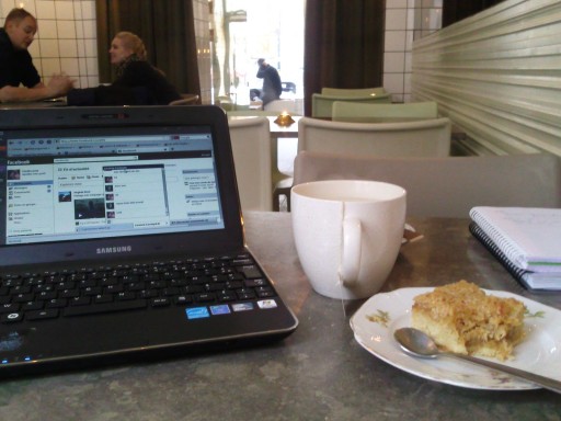 « Fika » est le mot utilisé en Suède pour la « pause-café », à toute heure. On y prend alors un café, ou un thé, et une sucrerie en général avec des amis. Personnellement, j’avais élu domicile dans ce café cet après-midi pour travailler. Mais j’ai aussi « fikade » avec ma nièce Loreene en chat’ant sur Facebook. Par ailleurs, le choix de ma pâtisserie aujourd’hui était tout simplement EXCELLENT !! :p