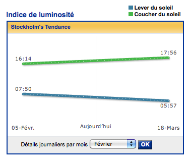 Petit à petit, nous récupérons un peu plus de soleil et de luminosité. Aujourd’hui, le lever du soleil était à 6:58 et le coucher sera à 17:05, soit 10h de luminosité (enfin pour ceux qui se lèvent tôt)!