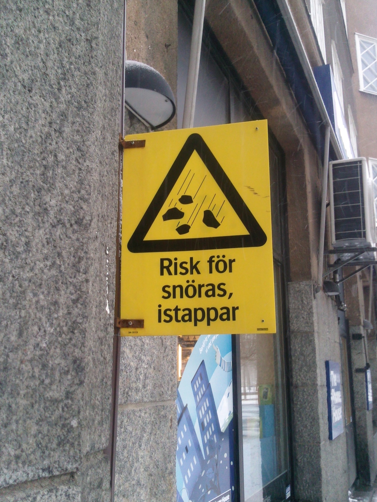 Alors que la neige a disparu dans la plupart de la ville, ces panneaux sont encore là pour les prochaines neiges. Ils nous avertissent des possibles chutes de neige et blocs de glace depuis les toits. Celui-là est fixe, mais régulièrement cet hiver, ils mettaient des panneaux provisoires nous incitant à nous éloigner des murs des immeubles ou bloquaient des trottoirs et des routes pendant que d’autres sur le toit s’activaient à faire tomber la neige.