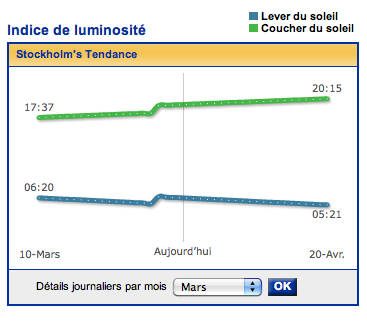 Sinon cela nous donne 13h de soleil en ce 30 mars avec un lever du soleil à 6:21 et un coucher du soleil à 19:25.