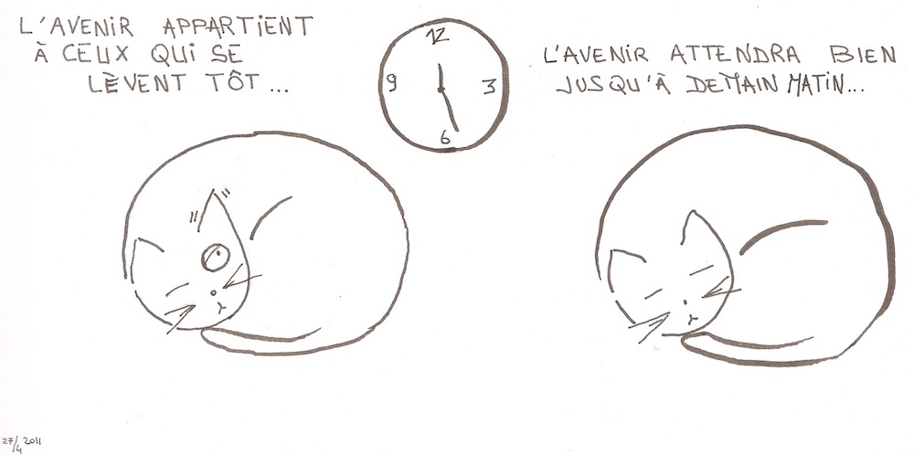 - French idiom: « L’avenir appartient à ceux qui se lèvent tôt » / « the future belongs to those who get up early »