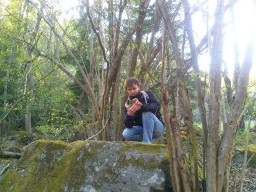 Lors de nos promenades, c’est en général Gurvan qui tient l’appareil photo. Il n’est donc pas aisé de le prendre en photo… La dernière fois, j’ai donc sorti mon téléphone portable, et on s’est retrouvé ainsi, l’un en face de l’autre, à essayer de dégainer le plus vite notre flash!