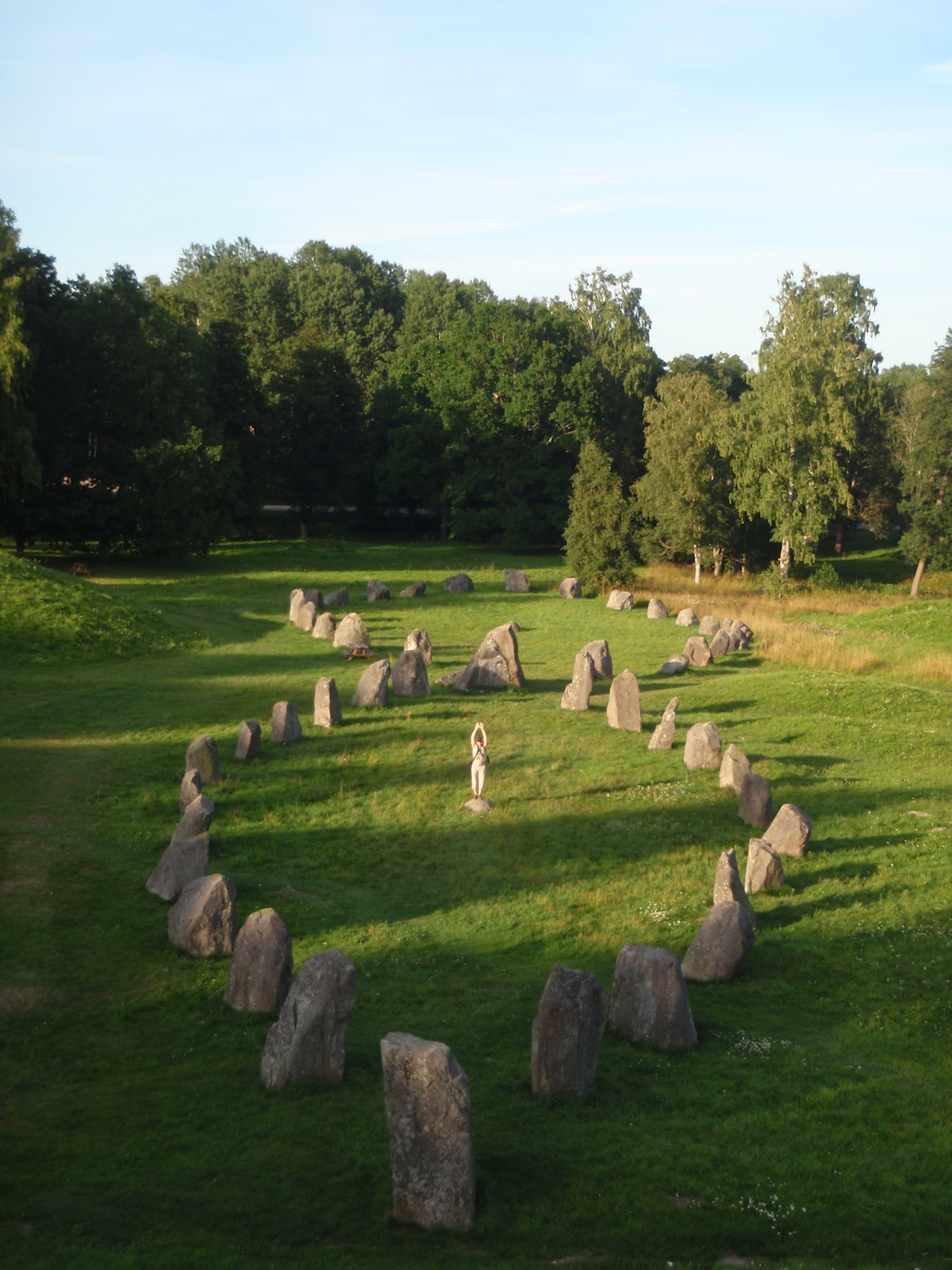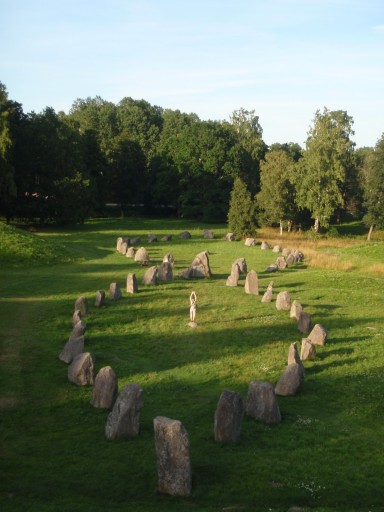 La journée a débuté dans la vieille capitale Uppsala et plus précisément dans la vieille ville abandonnée. Nous y avons découvert des tertres et des histoires avant de rejoindre la « nouvelle » Uppsala et sa Cathédrale qui nous rappelle étrangement la splendeur de celle qui se dresse à Paris. Et avant de rejoindre notre hôtel à VästerÃ¥s, nous sommes allés sur les tertres de Anundshög entourés de ses pierres qui forment des bateaux pour aider ces marins à passer dans l’autre monde. Au milieu, la pierre symbolisait le mat du bateau ; et Gurvan fait le … mat !