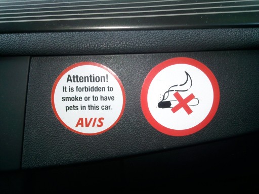 - « Oh tiens…?! C’est curieux ça… : ils précisent qu’ils ne veulent pas qu’on fume de pets dans la voiture…!! »