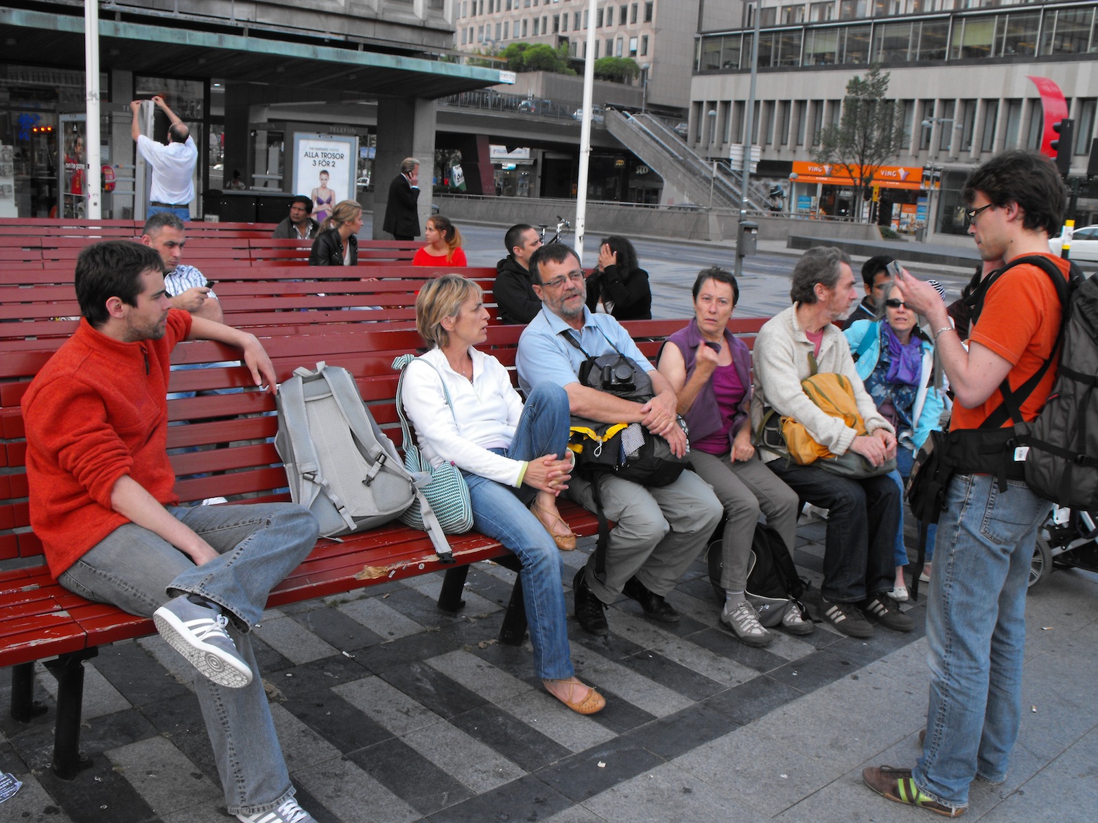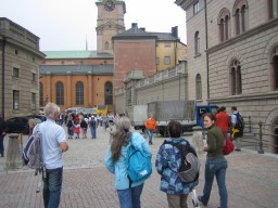 Nous voici de retour à Stockholm pour visiter la ville en un jour… Pas facile : Y a plein de choses à voir! Et un groupe de 10 personnes, c’est pas rien ! Alors… suivez le fanion rouge…!