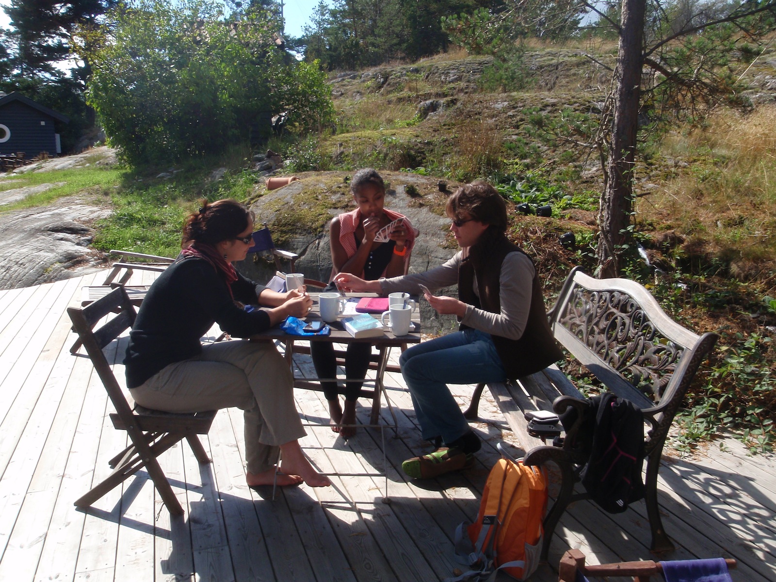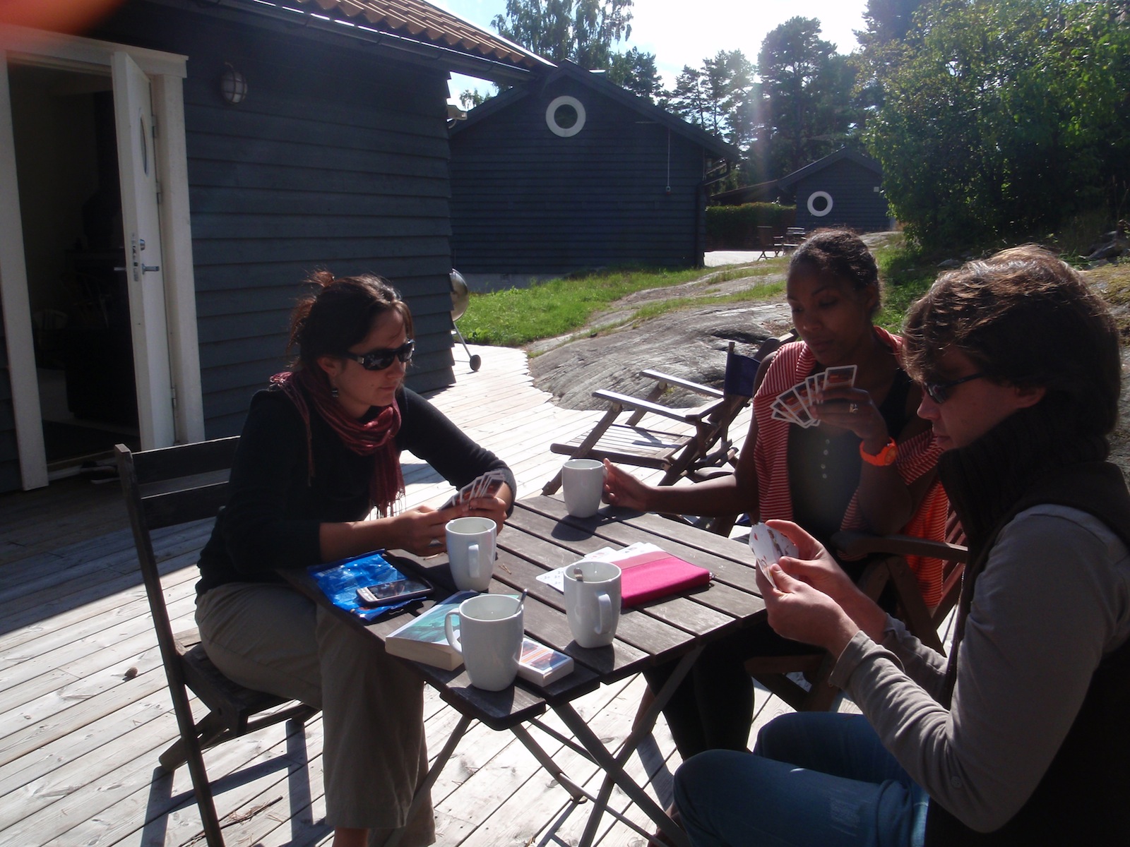 Début de journée tranquille à Utö : petite partie de cartes sur la terrasse. Ensuite en route pour une heure de vélo pour aller déjeuner dans un lieu magique des harengs au goût delicious !