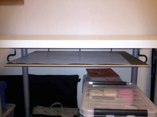 Et hop, Gurvan vient de me confectionner un suuuper casier sous le bureau, afin de pouvoir ranger mes grandes feuilles de dessin ou de peinture… Trop contente !