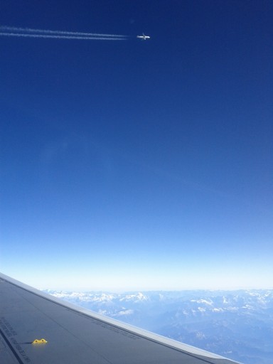 En allant à Madrid, peut-être au dessus des Pyrénées, mon avion en rencontre un autre.