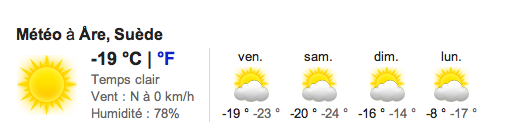 Ça a l’air d’aller pour nos chercheurs expatriés dans le nord… Je viens de piquer 2 photos d’un de ses collègues et le décor a l’air pas mal à Åre…!