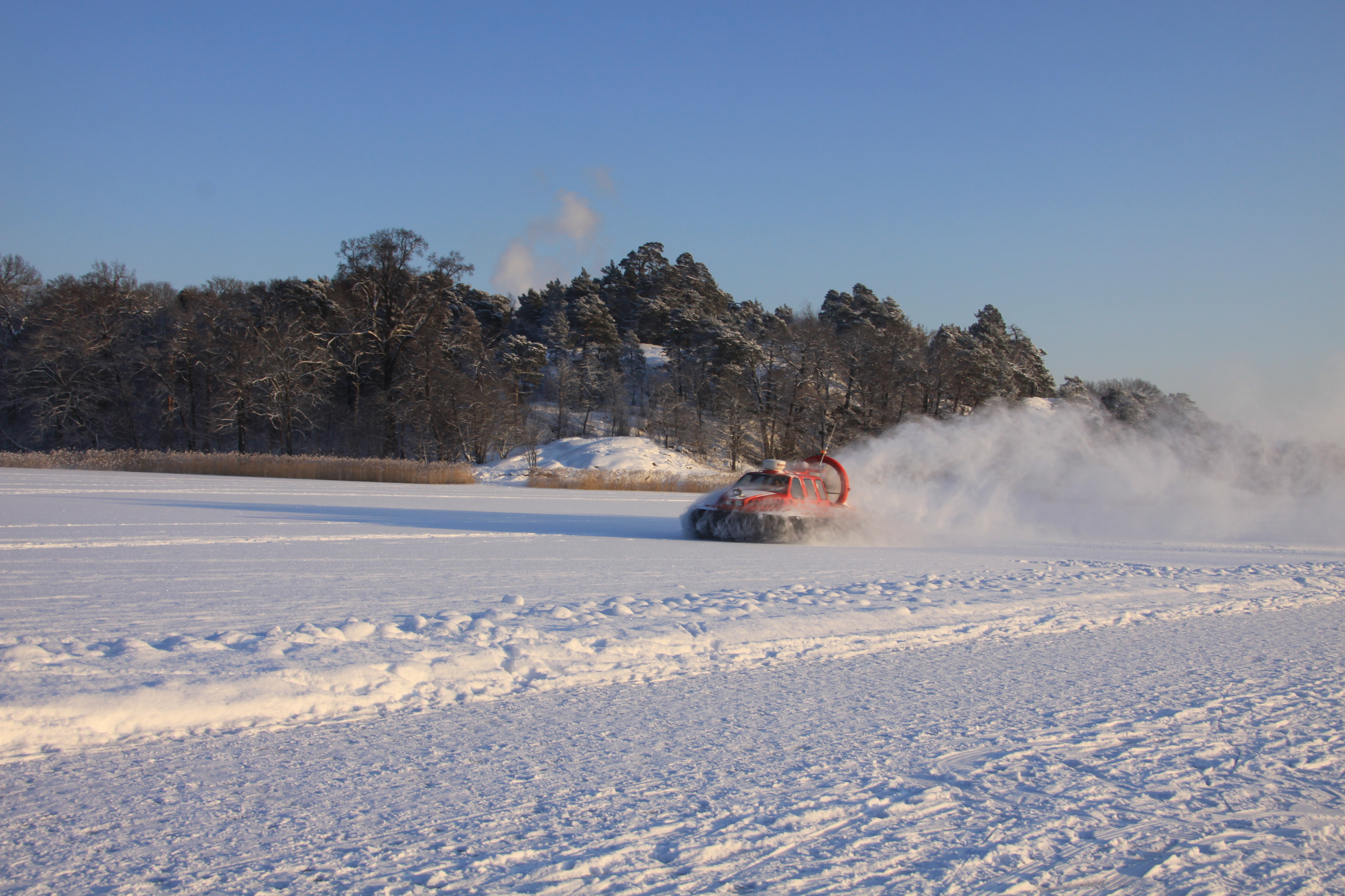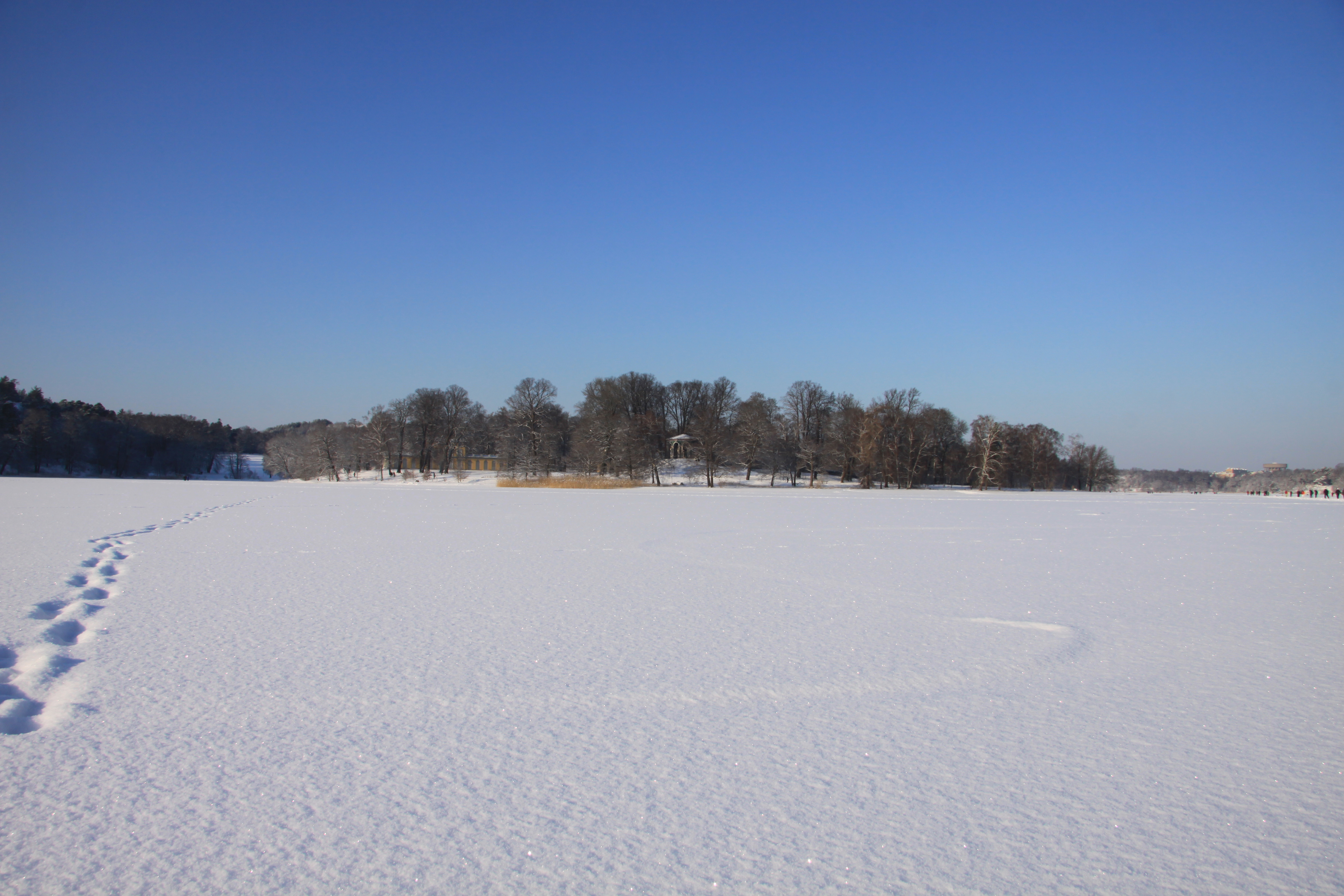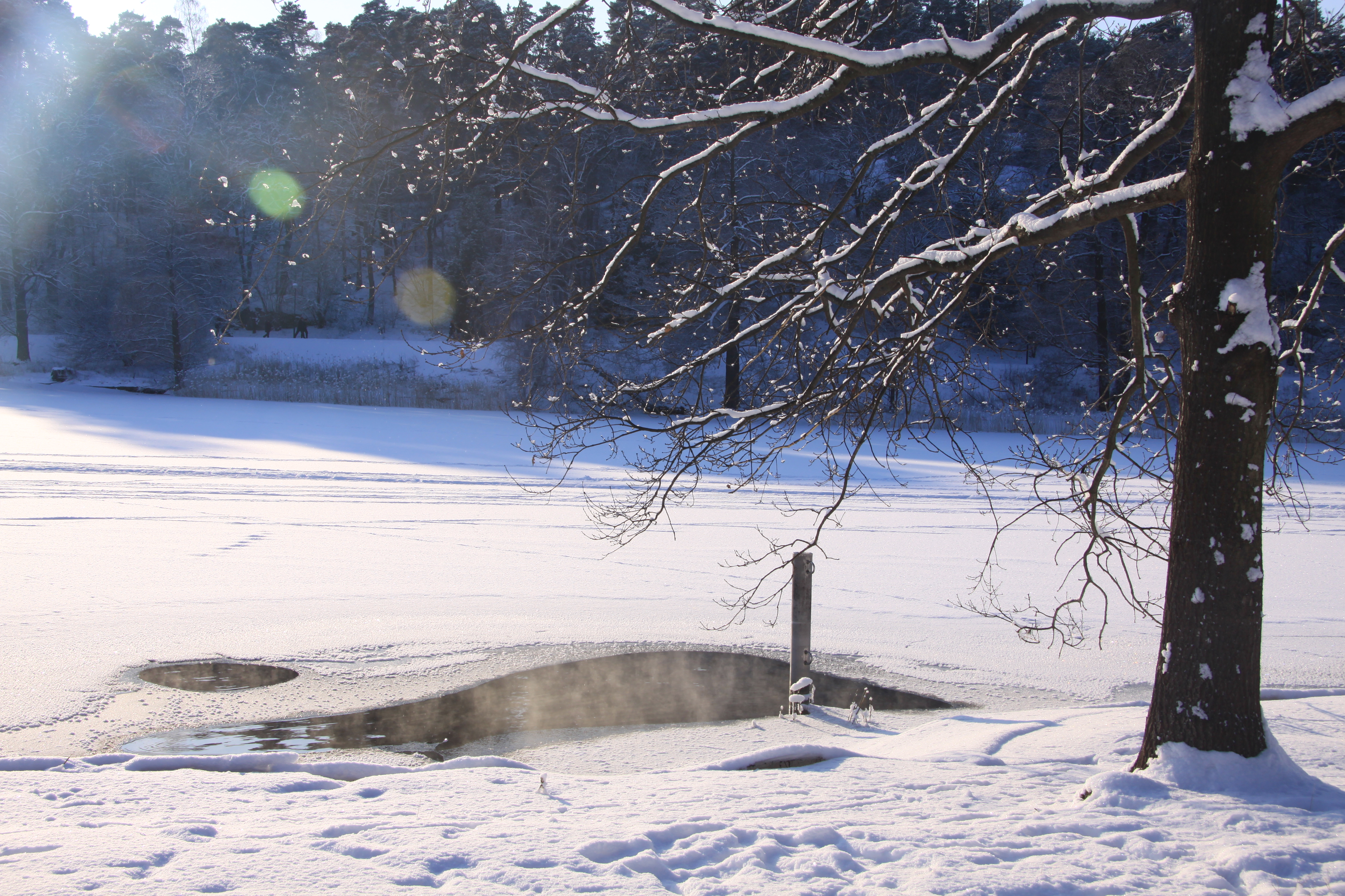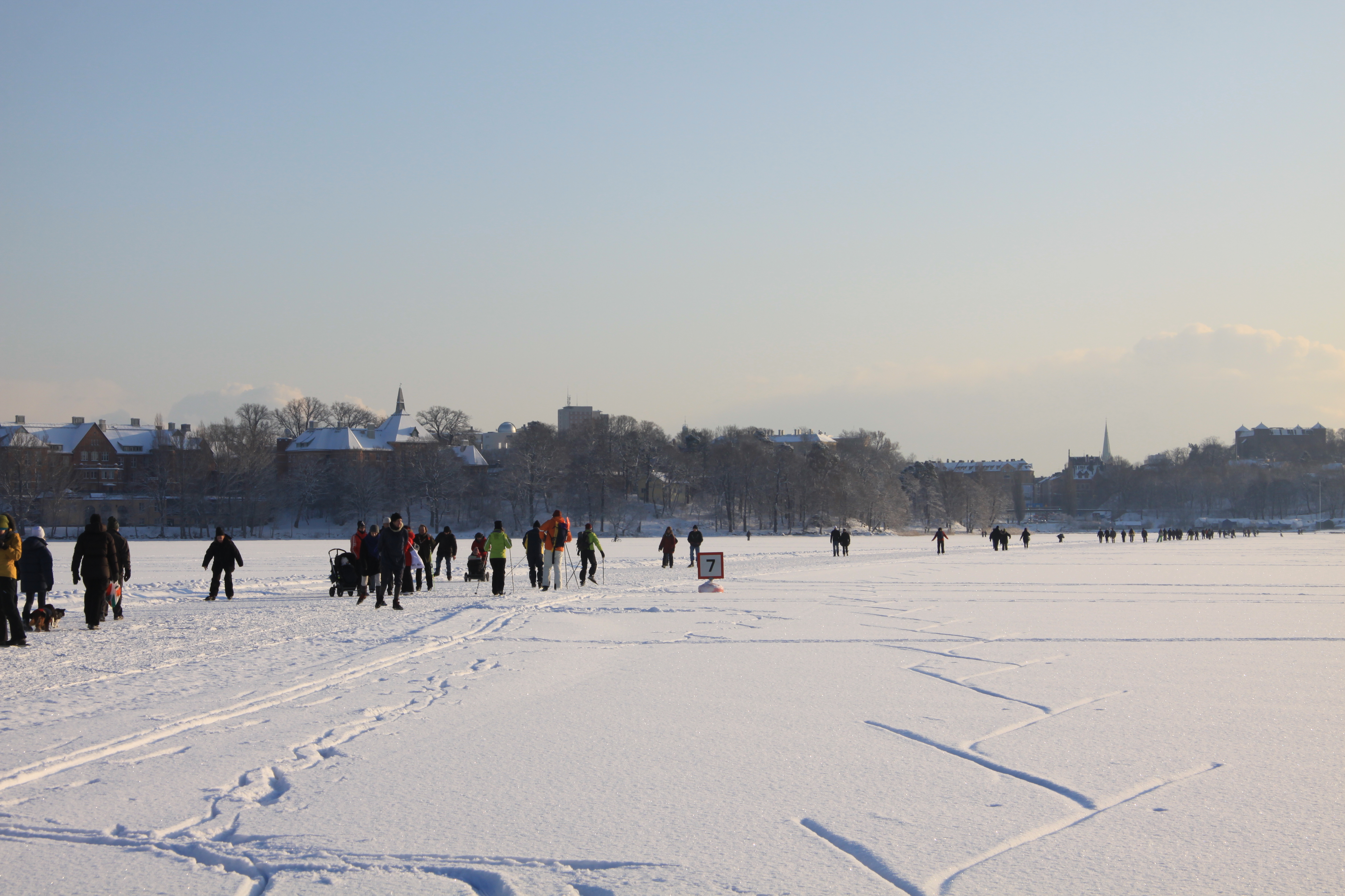 Quand nous sommes arrivés c’était un lac, liquide… Et voilà que ça s’est transformé en un champ gigantesque où les gens se promènent, skient, patinent avec leurs poussettes, on y voit même des mobylettes et des voitures à coussins d’air… C’est bel et bien solide !