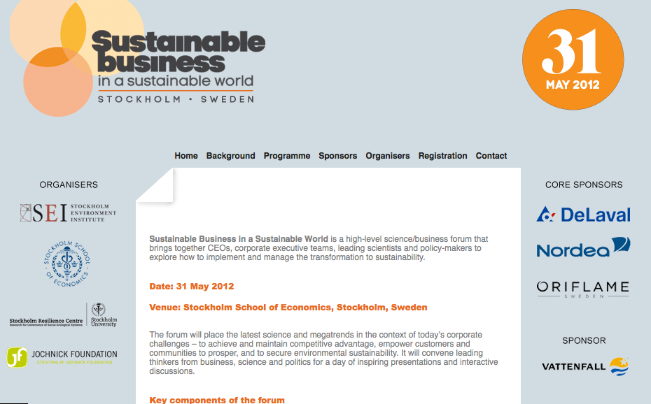 Pour en savoir plus sur ce que je fais, voici l’évènement dont je m’occupe… : http://www.sustainablebusinessworld.com/
