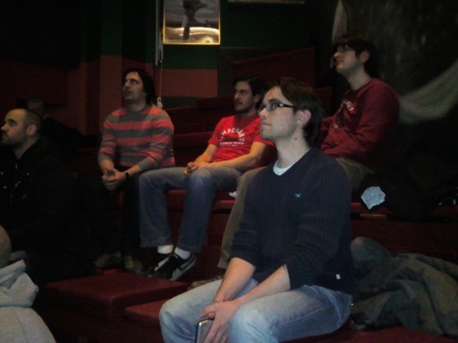 Voici Gurvan et ses collègues que j’ai rejoint au O’Learys en bas de chez nous. Eux voulaient suivre le match, moi manger un bon hamburger maison… Bilan des courses, un seul écran diffusait le match, dans une sorte de mini théâtre, l’écran en hauteur… Bref difficile de dîner avec une assiette de frittes et un Hamburger sur ces estrades… Alors je prends mon mal en patience et attends la fin du match avec l’assurance de mon cher et tendre qu’on pourra dîner encore après. Sauf que voilà, la cuisine était fermée…