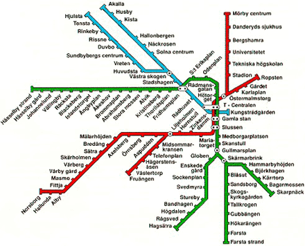 Rudan (près du centre commercial de Hanninge; train de banlieue), Ursvik (Sundbyberg; métro), Väsjöbacken (Sollentuna)