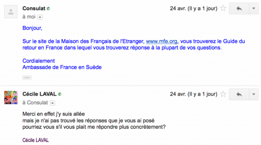 N’est-ce pas l’ambassade qui devrait faire office de mairie pour les personnes vivant à l’étranger? et par conséquent qui est supposée répondre à nos questions pratiques, administratives etc…?