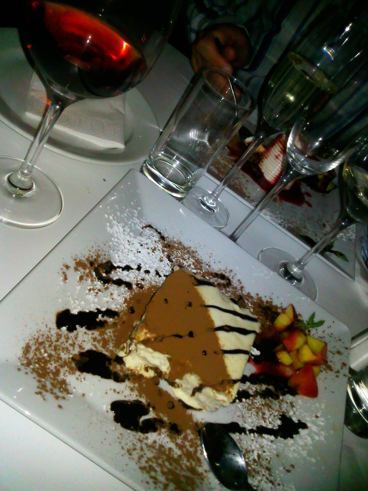 Nous avons pris une entrée: Gurvan une sorte de choux avec du bleu coulant entre les feuilles, et moi une sorte de rouleau de printemps avec un carpaccio de boeuf autour du rouleau (si je puis dire cf. photo avec Gurvan) EXQUIS. Ensuite nous avons pris un assortiment de viandes au grill, toutes plus fondantes que les autres (cf. photo ci-dessous): du porc, du poulet, du chorizo, du boeuf. J’ai gardé le meilleur pour la faim, … erreur à ne pas refaire! j’ai eu les yeux plus gros que le ventre après ma 2ème viande…