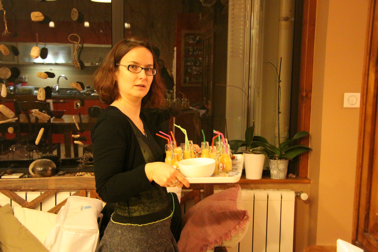Il y a plein de salles très différentes mais dont l’enchainement de l’une à l’autre se passe très bien. Par exemple pour donner un peu l’ambiance : il y avait une salle très chic avec des lustres et de la petite vaisselle, un coin vieux bistrot marin, un coin cirque, un salon velour, une bibliothèque etc. Nous nous étions au cirque, cf. derrière Gurvan, un décor arlequin, des affiches d’époque comme celle que nous avions à coté de nous et qui parlait d’un cirque français avec un hippopotame de 3 tonnes qui faisait le tour de la place du village « le matin à 15h et le soir à 20h »! Bref beaucoup de styles différents (derrière moi, on en voit un autre encore).