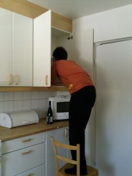 Ca y est on a enfin vu notre nouvel appartement, nous avons même les clés! Il est très sympa!! Gurvan a d’ailleurs déjà commencé à bricoler pour installer dans le placard notre 1ère contribution au déménagement : les bouteilles de vin!!!