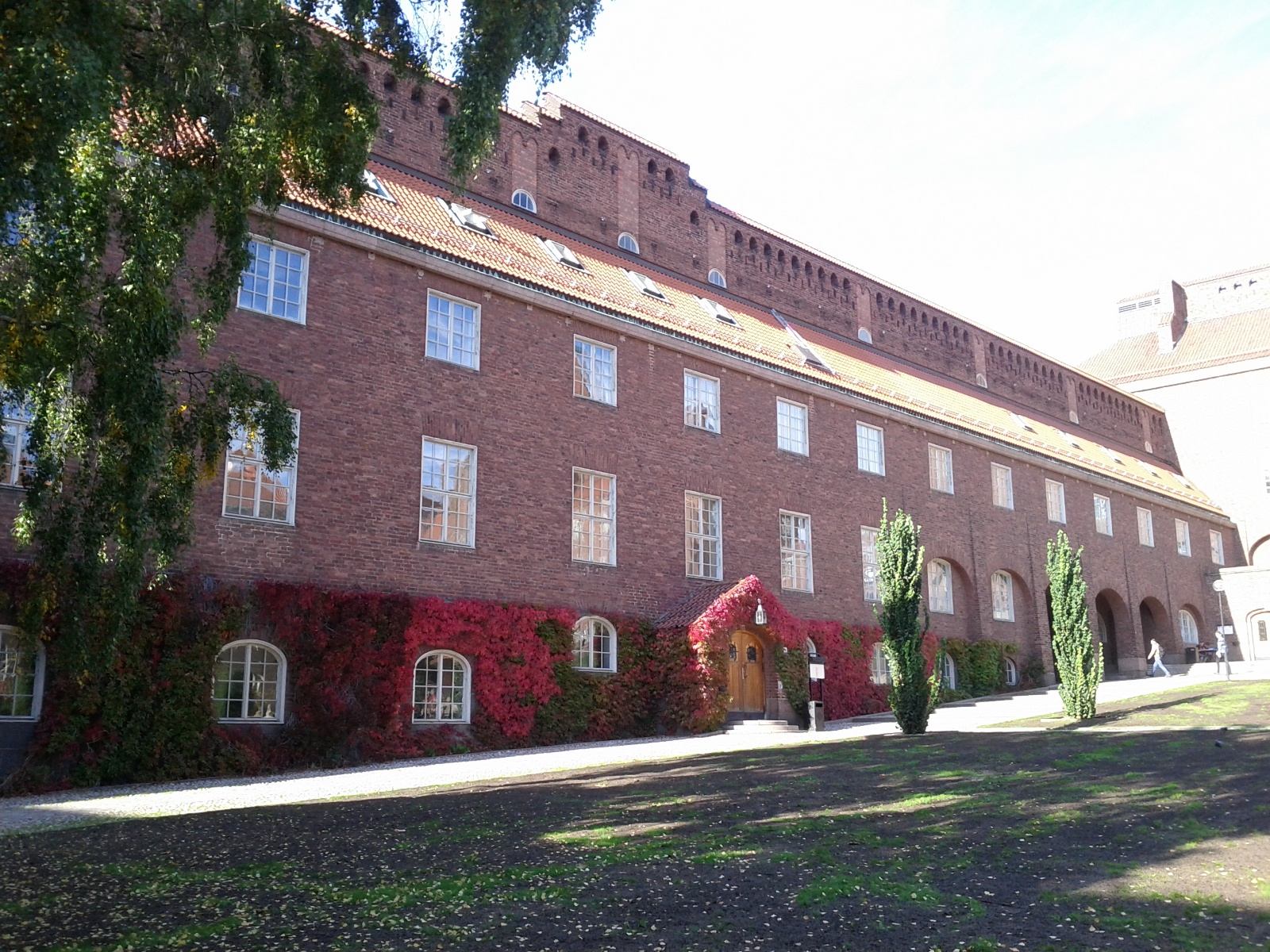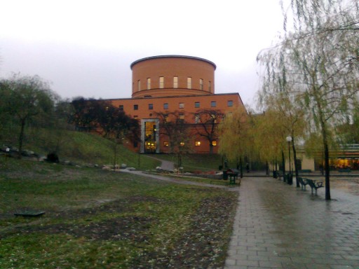 Les tons ocres réchauffent l’atmosphère des temps pluvieux d’automne. Pour info, le bâtiment au fond, c’est la bibliothèque principale de la ville de Stockholm (Stadsbiblioteket).