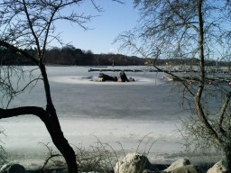 Quand nous sommes arrivés c’était un lac, liquide… Et voilà que ça s’est transformé en un champ gigantesque où les gens se promènent, skient, patinent avec leurs poussettes, on y voit même des mobylettes et des voitures à coussins d’air… C’est bel et bien solide !
