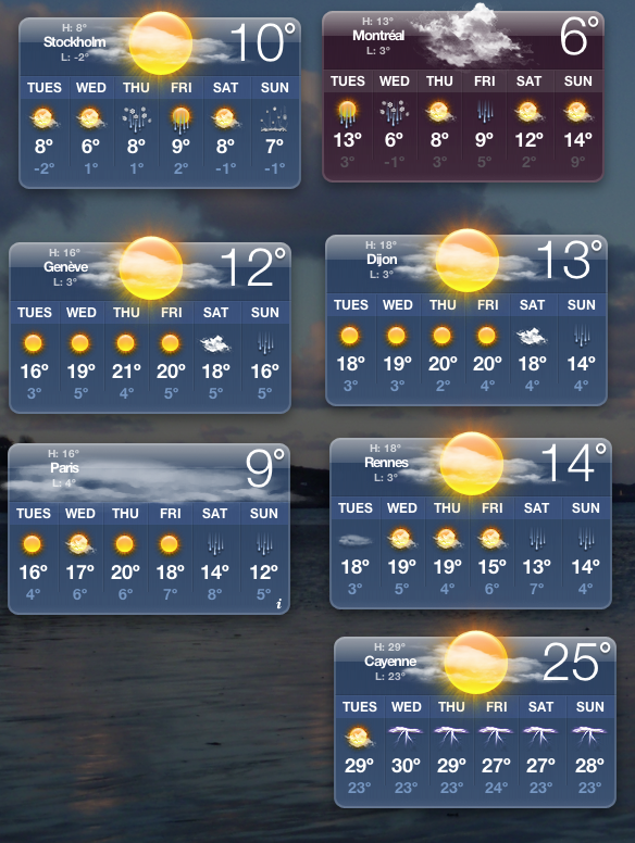 Moi qui chante depuis ce matin « voilà l’été », ben en fait comparé aux 20°C, on est très au début du printemps ici !!