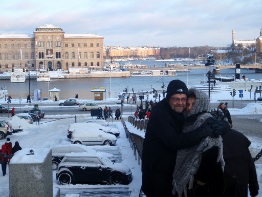 Une peinture presque trop flamande en haut de Gamla Stan et notre couple couvert et bien frileux (-13°C ressentis… y a de quoi!) mais très bien conservé!