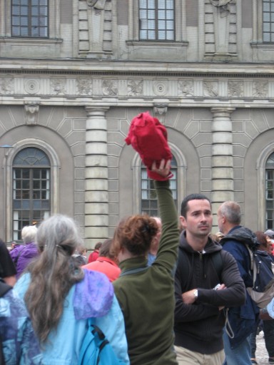 Nous voici de retour à Stockholm pour visiter la ville en un jour… Pas facile : Y a plein de choses à voir! Et un groupe de 10 personnes, c’est pas rien ! Alors… suivez le fanion rouge…!