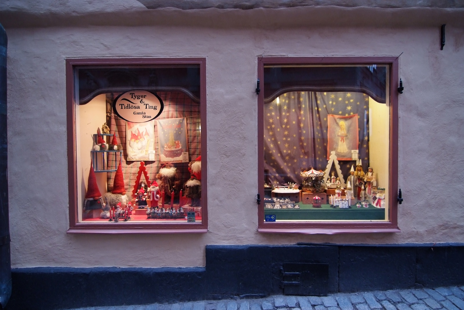 Aujourd’hui, notre « course » aux cadeaux de Noël s’est achevée dans les ruelles de Gamla Stan alors que de fins flocons de neige commençaient à se poser doucement sur les rares passants.