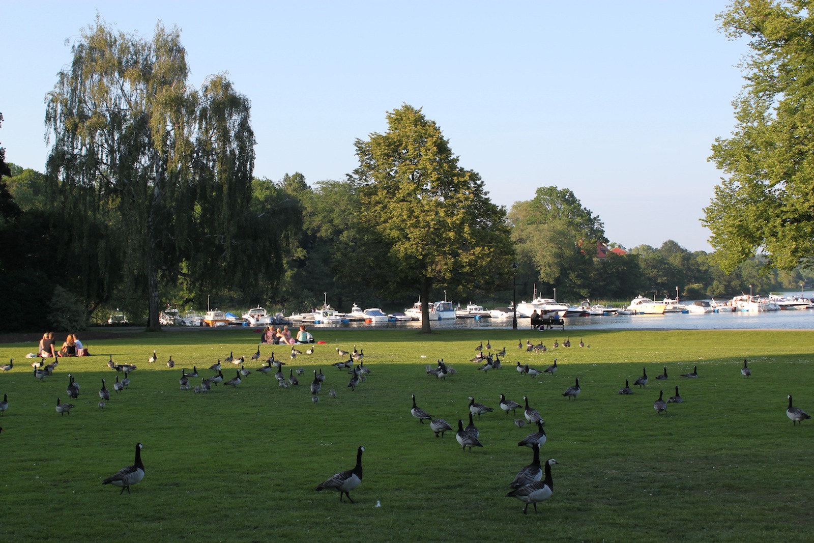 Après avoir été attaquées par des mouettes, voleuses de frites ; nous avons décidé de nous remettre de nos émotions sur cette étendue d’herbe à l’entrée de DjugÃ¥rden où ces drôles d’oiseaux sont plus nombreux que les drôles d’humains. Et pour cause… Ils sont si nombreux que nous nous sommes inévitablement assises sur ce que l’on a appelé de la bouse d’oiseaux vertes…