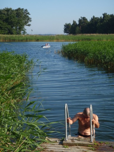 Une nouvelle journée va être mise à profit pour se détendre sur notre merveilleux site. Au programme : baignades pour les plus téméraires, Alain, Marie, Gene & Gurvan ; partie de Kubb pour certains, mais avec une grande distraction autour du canoë et donc pertes successives des membres du jeu qui se lancent à leur tour au jeu des pagaies…