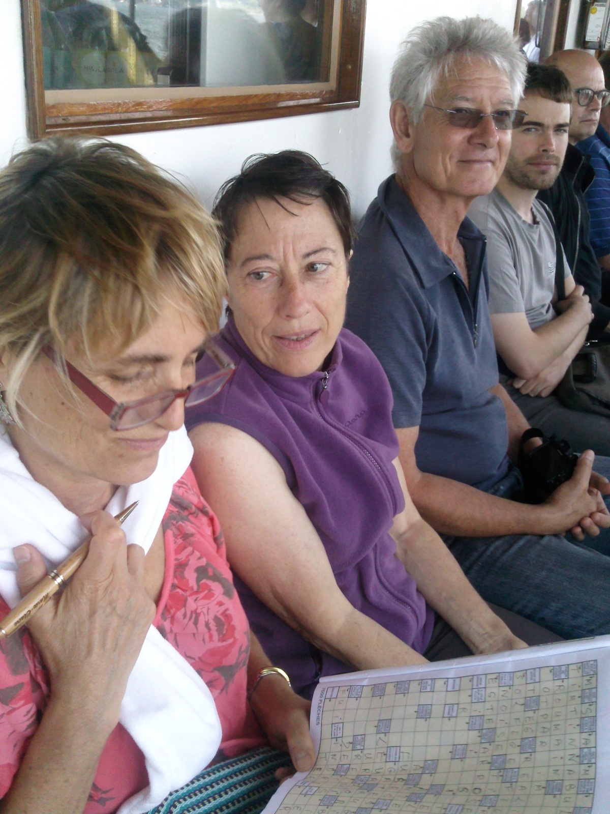1ère étape : prendre le bateau et faire des mots croisés (Marie, Gene, Alain, Colas) !