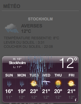 Tout ça pour vous dire qu’après la pluie, il semblerait que la neige ne soit déjà annoncée pour les prochains jours à Stockholm…! A suivre donc…