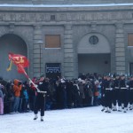 Première étape, très très fraiche, et joues roses garanties : attendre patiemment la relève de la garde à 12h15. Il y a foule, mais cela ne nous réchauffe pas des masses, malgré nos petits sautillements!!! Enfin le « spectacle » commence… Et je dis « spectacle » car j’avoue me demander s’il s’agit vraiment d’une vocation militaire et d’une réelle défense du palais ou si nous avons à faire à des intermittents du spectacle!?! Nous n’avons même pas tenu 30 minutes dehors, le froid a eu raison de nous avant la fin du spectacle et nous avons couru agiter notre sang frigorifié au chaud, dans les couloirs du Palais…