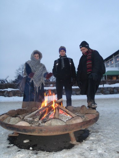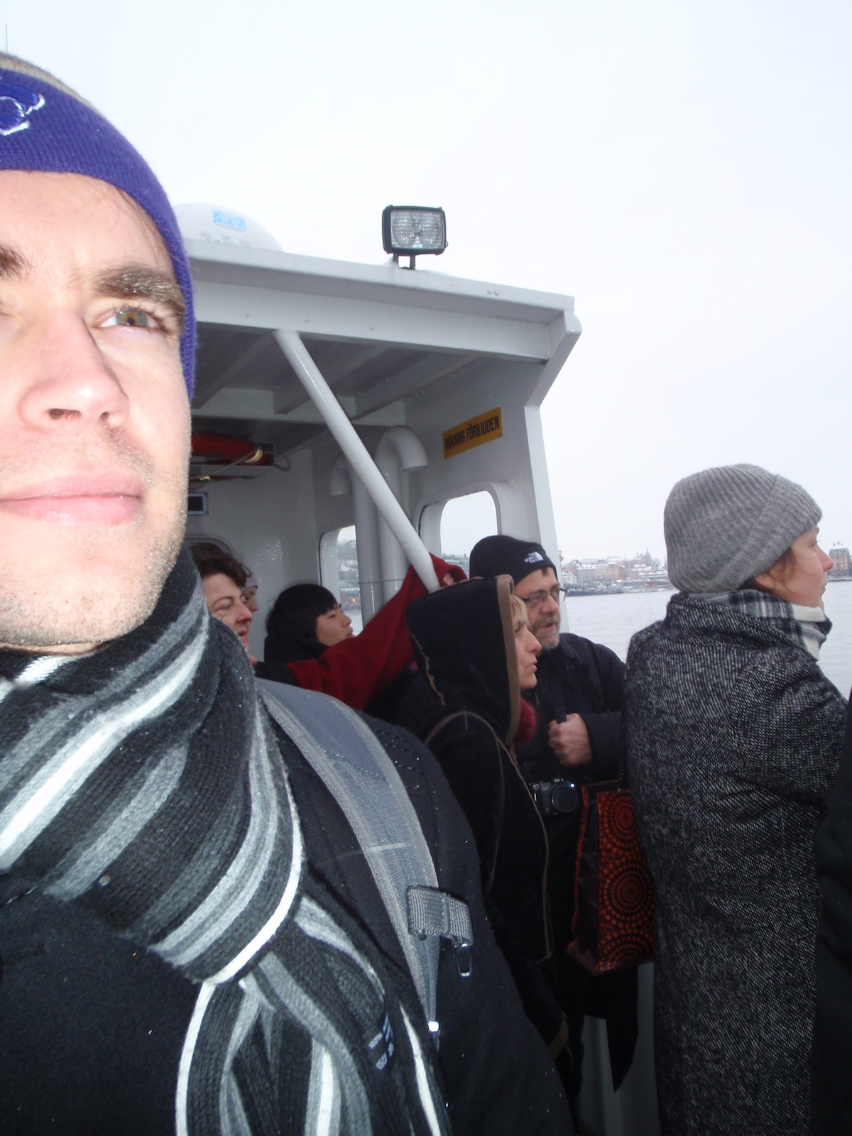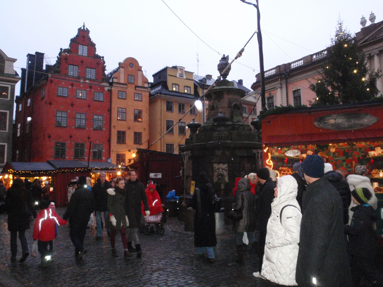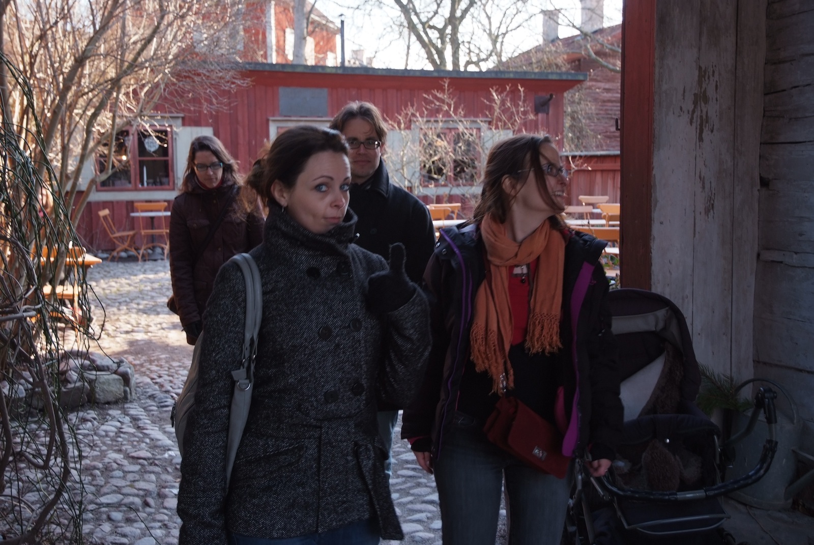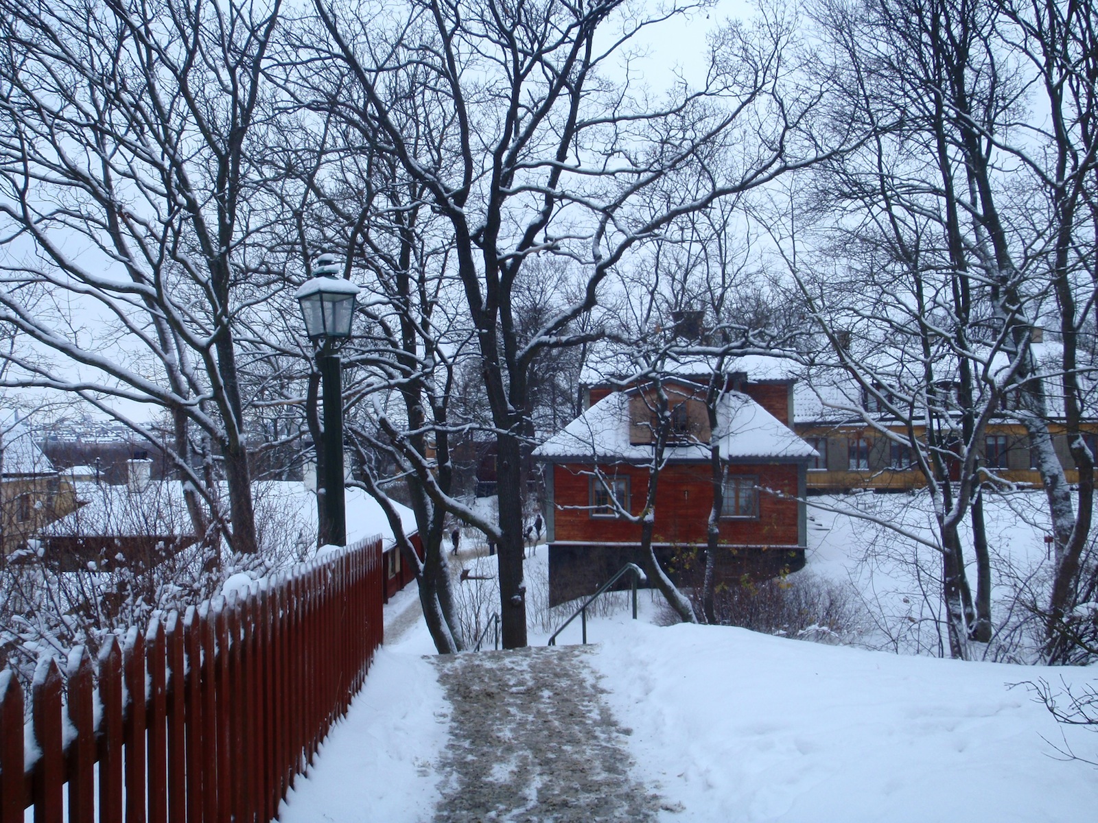 Depuis Slussen, nous avons pris le ferry, qui fait partie des transports en commun pour aller sur DjugÃ¥rden. Sur cette île se trouve, Skansen un musée en plein air. Nous avons ainsi pu nous balader dans la vieille ville et remonter le temps à travers les maisons et métiers. Nous avons également profité du marché de Noël et de ses danses folkloriques et … réchauffantes!!